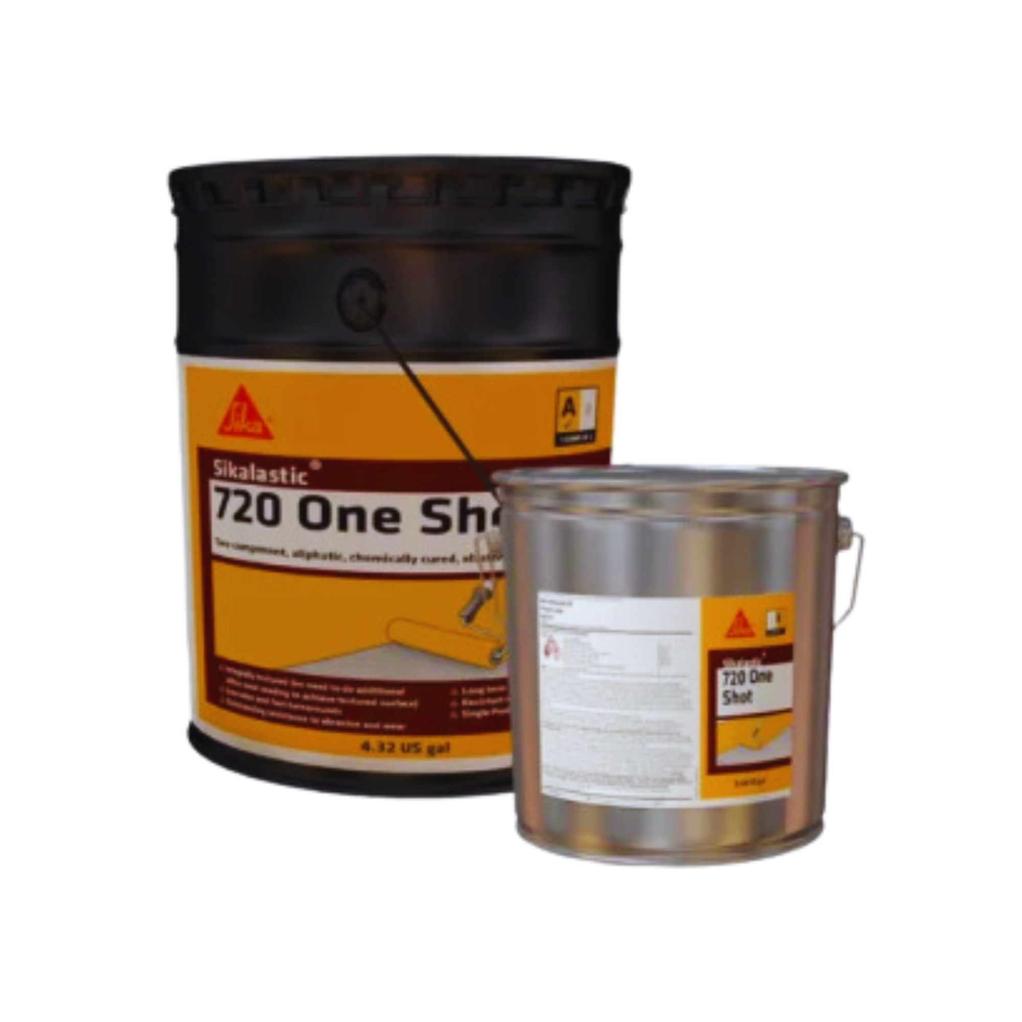Sikalastic®-720 One Shot es un revestimiento impermeable de poliuretano elastomérico de dos componentes, con textura integrada, de rápido curado químico, alifático, para tráfico vehicular y peatonal. Reemplaza los sistemas estándar de capa base y múltiples capas superiores.